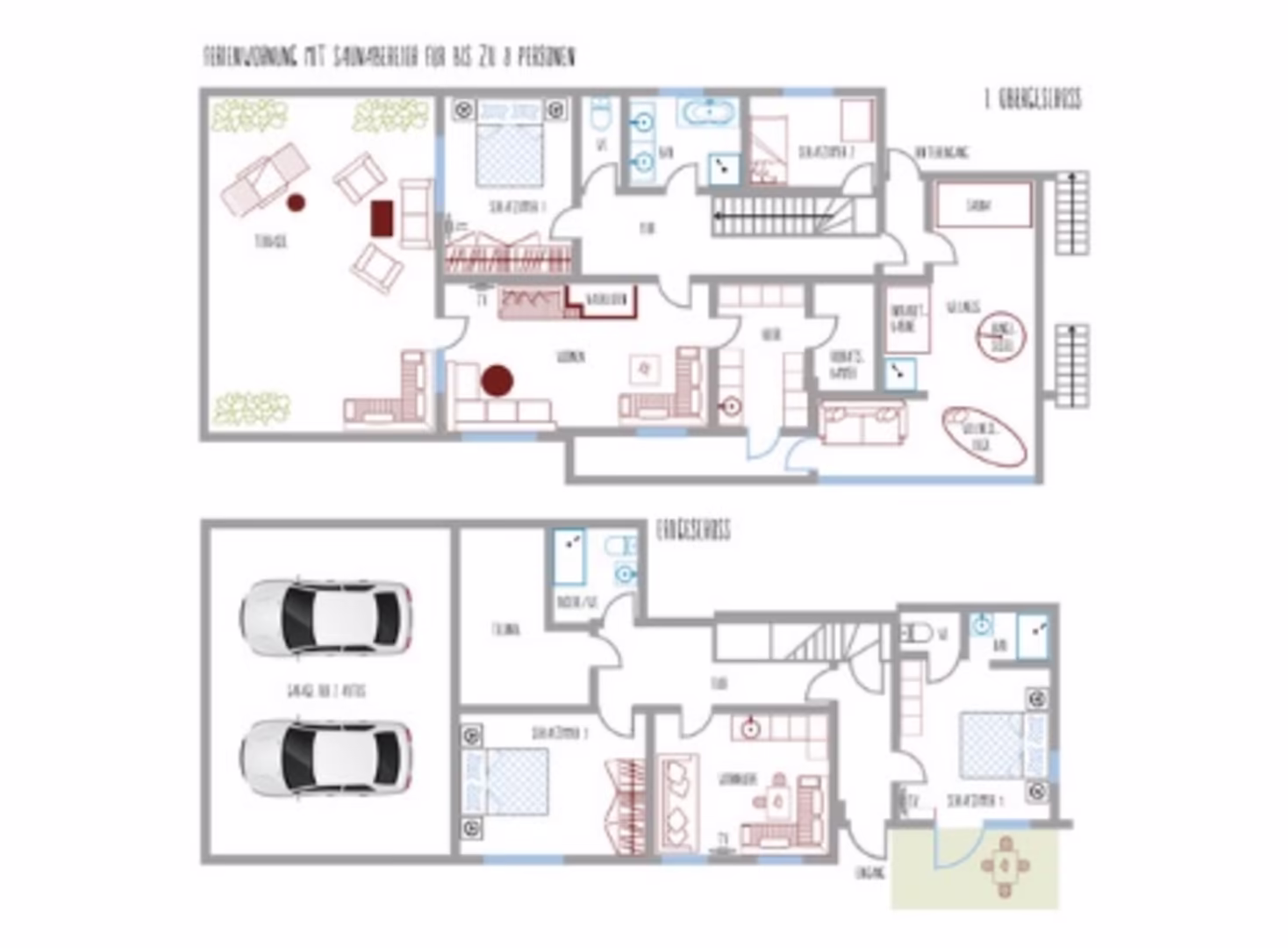 Das Haus kann entweder als komplettes Chalet gebucht werden oder in zwei separate Ferienwohnungen aufgeteilt werden.