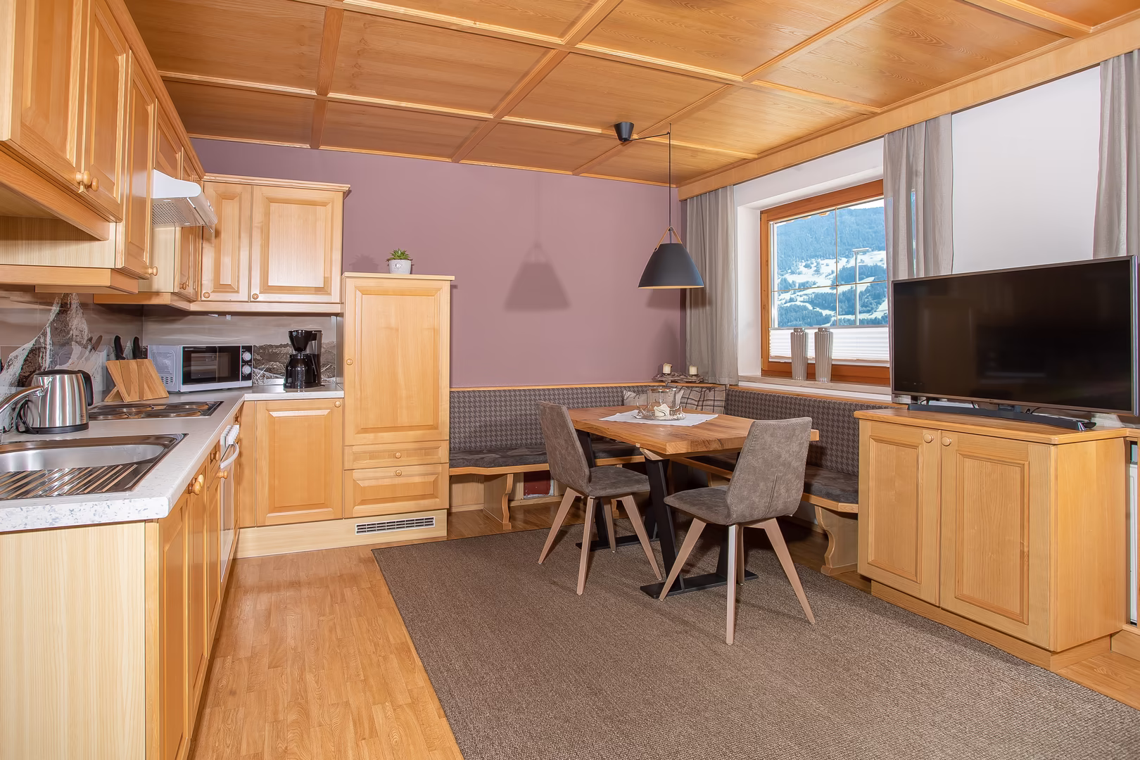 Das neu renovierte Chalet Bergzeit in Fügen bietet auf 220 m² großzügigen Raum für Erholung und gemeinsame Stunden. Mit vier Schlafzimmern, drei Bädern, voll ausgestatteter Küche, separater Wohnküche, großem Wohnbereich und einer Sonnenterrasse mit Panoramablick ist es ideal für Familien und Gruppen.